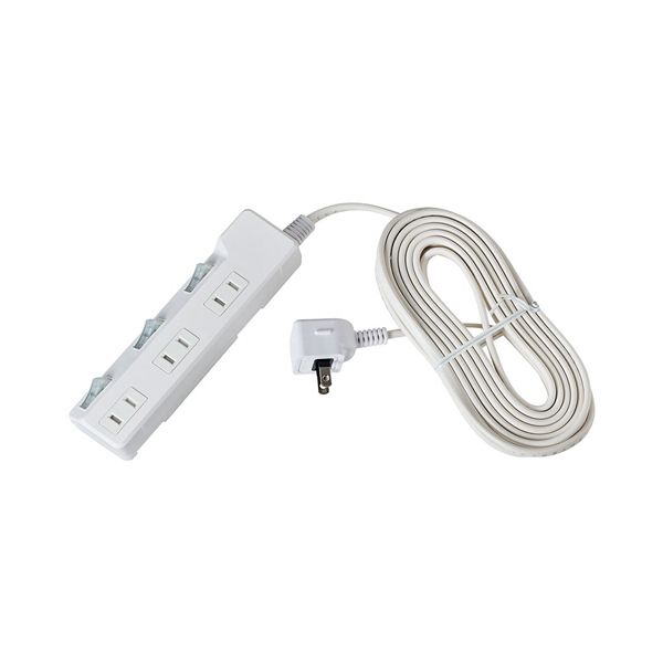 ●本体の置き方によって差込口の向きが選べる、3個口OAタップ。ケーブル長さは5mです。