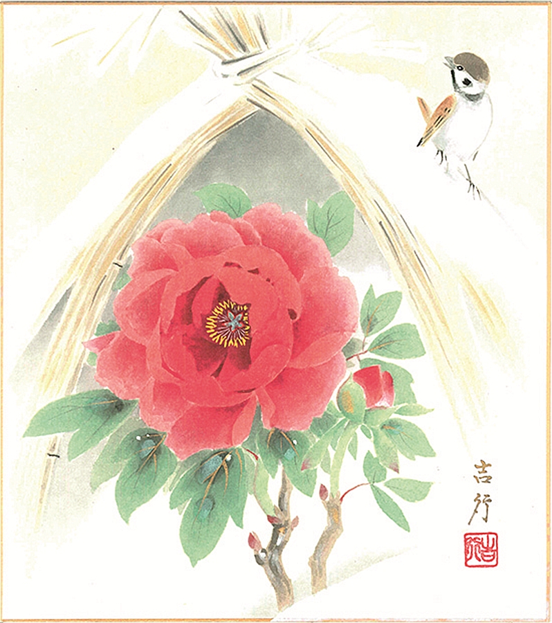 色紙(冬)佐藤 吉行作画「寒牡丹」 色紙寸法24.2X27.2cm