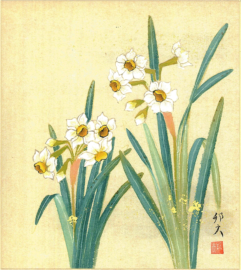 色紙(冬)片山 邦夫作画「水仙」 色紙寸法24.2X27.2cm