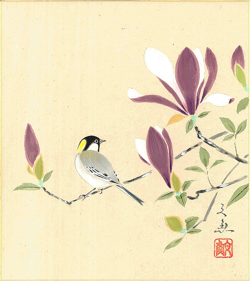 色紙(春)中谷 文魚作画「木蓮」 色紙寸法24.2X27.2cm