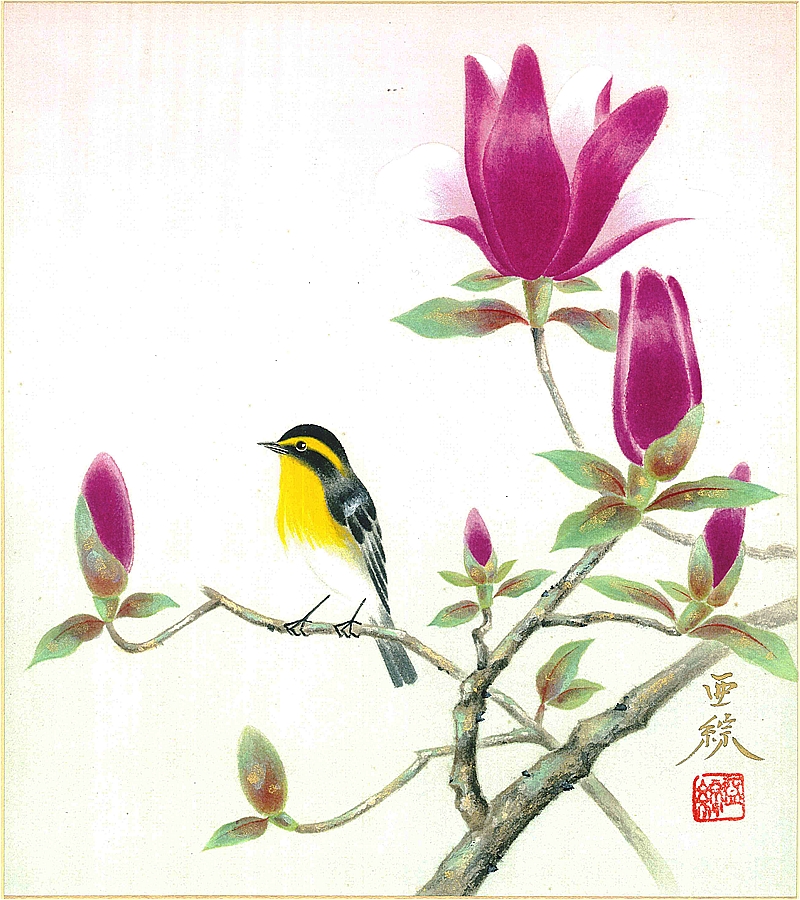 色紙(春)林 亜綜作画「木蓮」 色紙寸法24.2X27.2cm