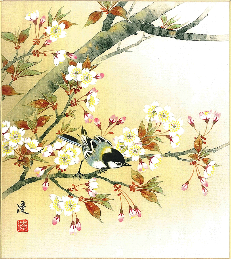 色紙(春)中村 凌作画「桜」 色紙寸法24.2X27.2cm