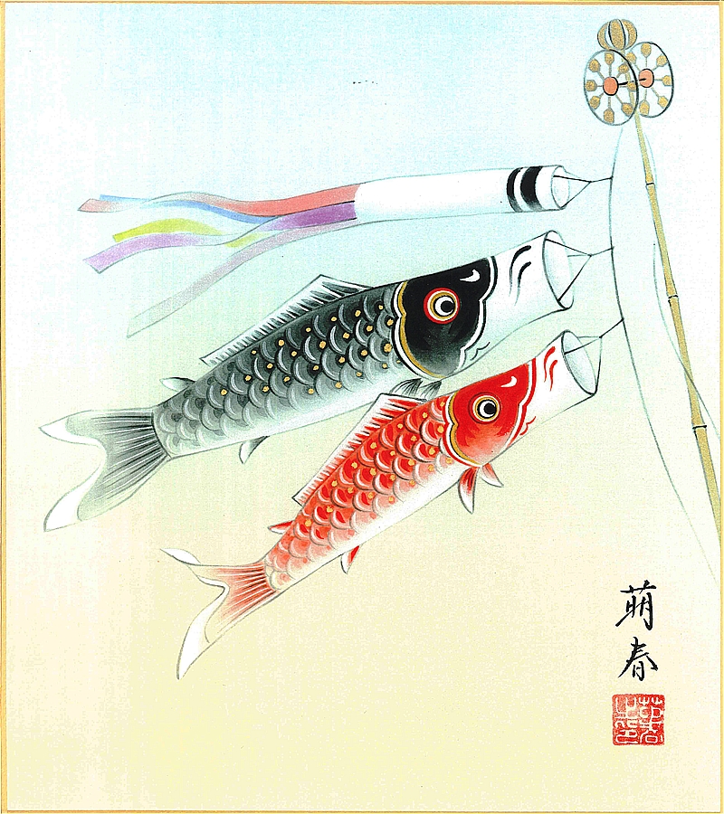 色紙(端午の節句)奥田 萌春作画「鯉のぼり」 色紙寸法24.2X27.2cm