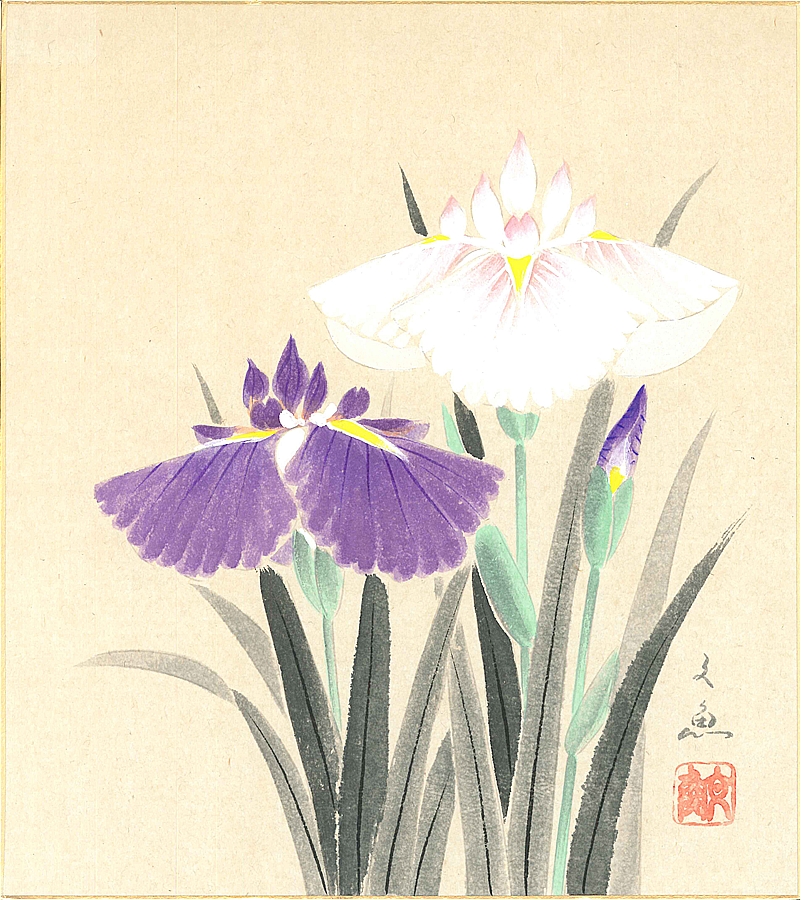色紙(春)中谷 文魚作画「菖蒲」 色紙寸法24.2X27.2cm
