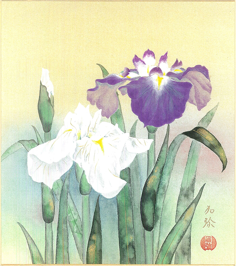 色紙(春)鈴木 加弥作画「菖蒲」 色紙寸法24.2X27.2cm