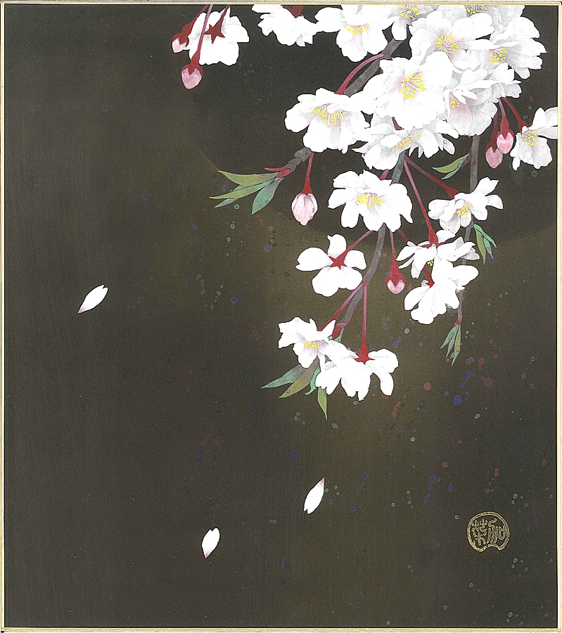 色紙(春)白木 菜加作画「しだれ桜」 色紙寸法24.2X27.2cm