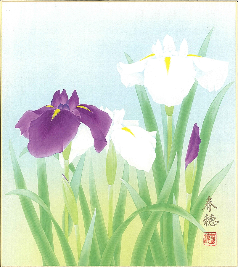 色紙(春)藤田 春穂作画「菖蒲」 色紙寸法24.2X27.2cm