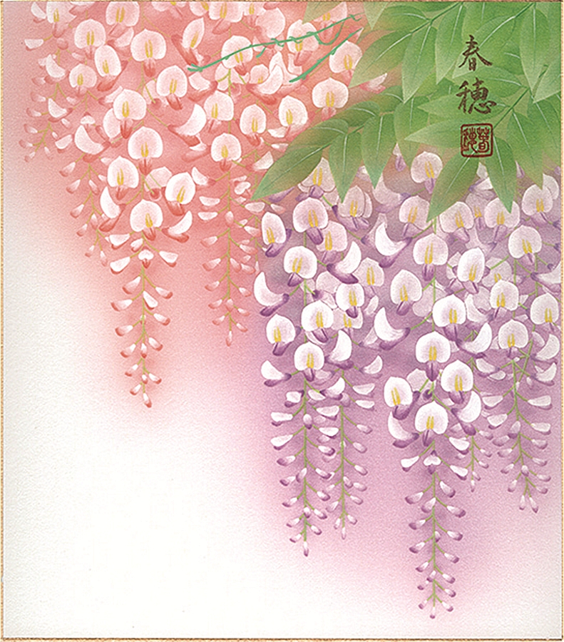 色紙(春)藤田 春穂作画「藤」 色紙寸法24.2X27.2cm
