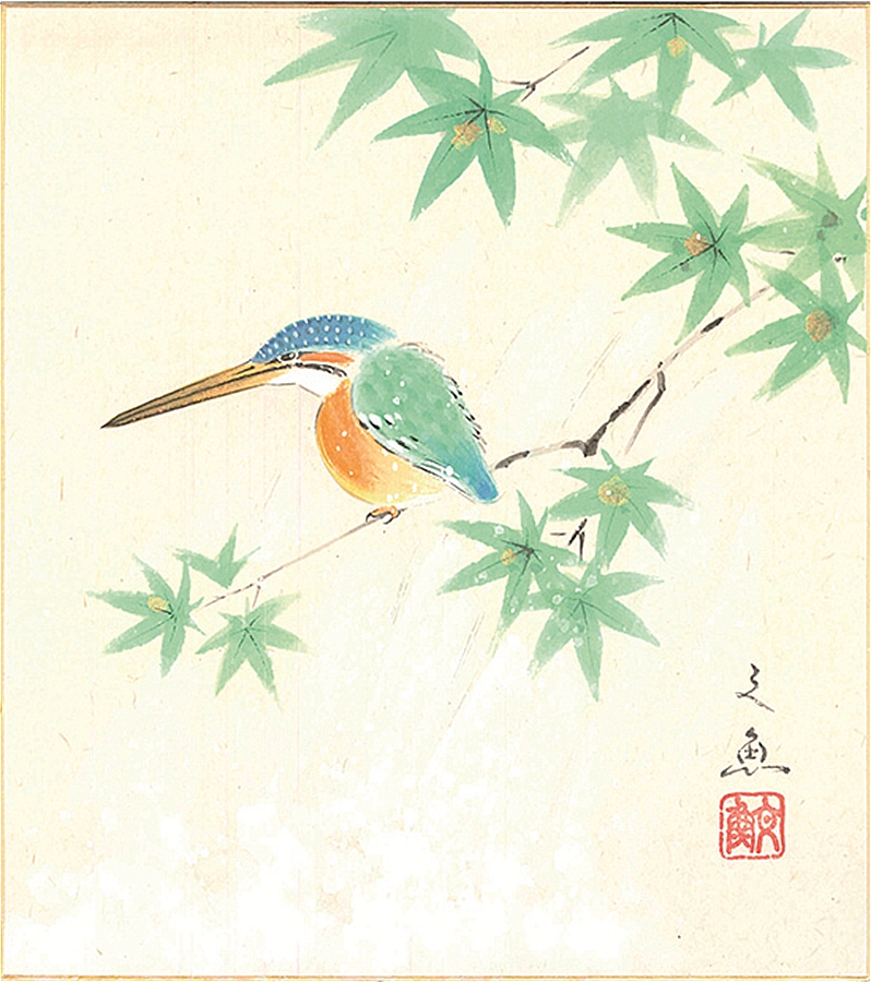 色紙(夏)中谷 文魚作画「川蝉」 色紙寸法24.2X27.2cm