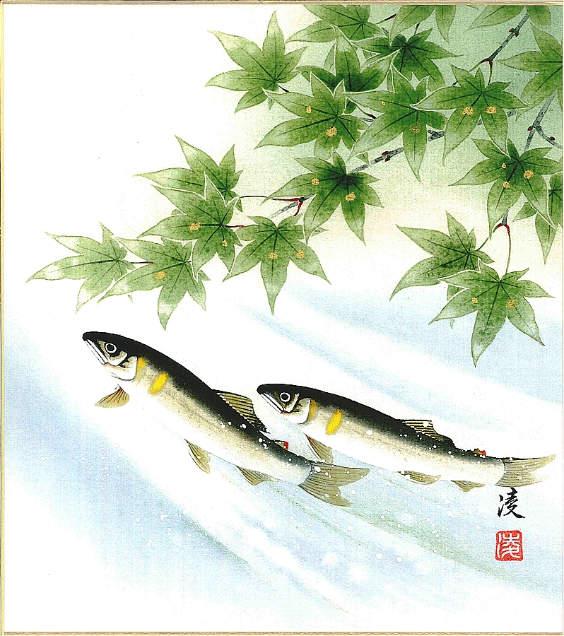 色紙(夏)中村 凌作画「鮎」 色紙寸法24.2X27.2cm