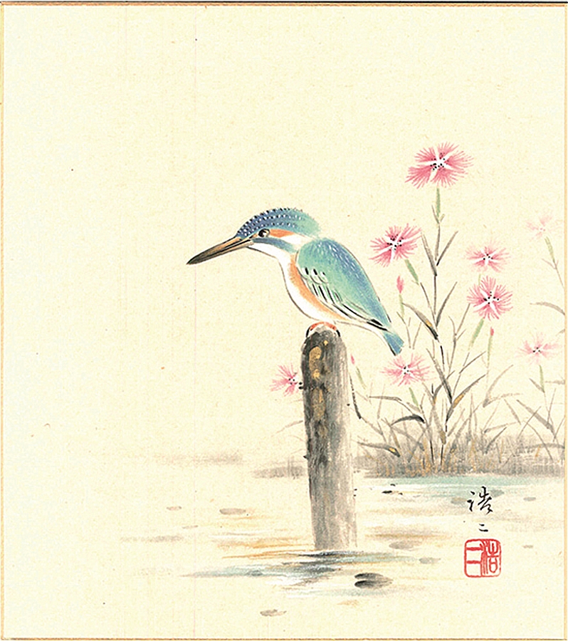 色紙(夏)佐藤 浩二作画「撫子に川蝉」 色紙寸法24.2X27.2cm