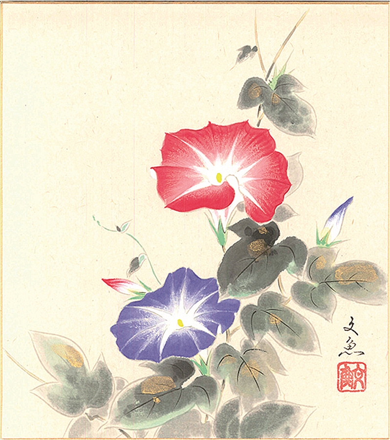 色紙(夏)中谷 文魚作画「朝顔」 色紙寸法24.2X27.2cm