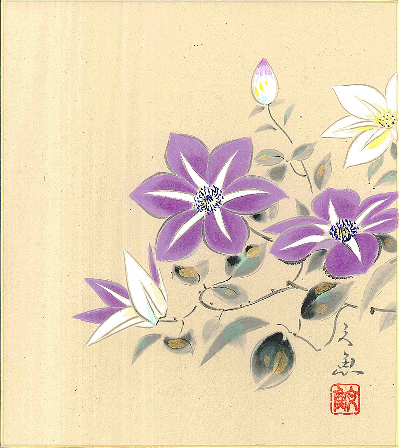 色紙(夏)中谷 文魚作画「鉄仙花」 色紙寸法24.2X27.2cm