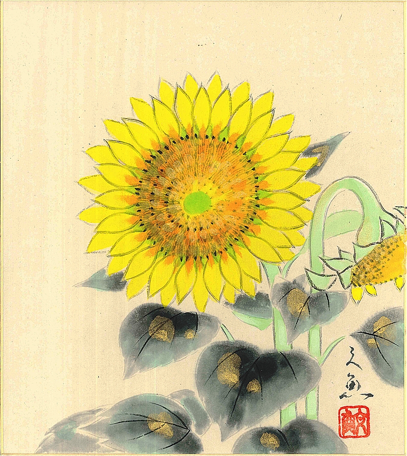 色紙(夏)中谷 文魚作画「向日葵」 色紙寸法24.2X27.2cm