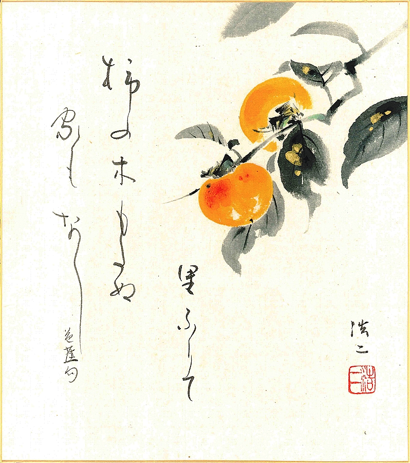 色紙(秋)佐藤 浩二作画「俳画 柿」 色紙寸法24.2X27.2cm