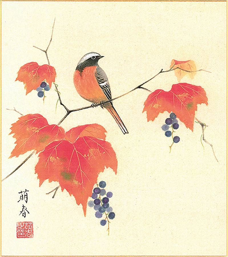 色紙(秋)奥田 萌春作画「山葡萄」 色紙寸法24.2X27.2cm