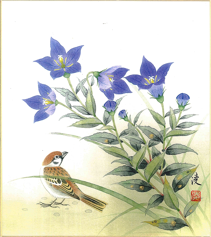 色紙(秋)中村 凌作画「桔梗」 色紙寸法24.2X27.2cm