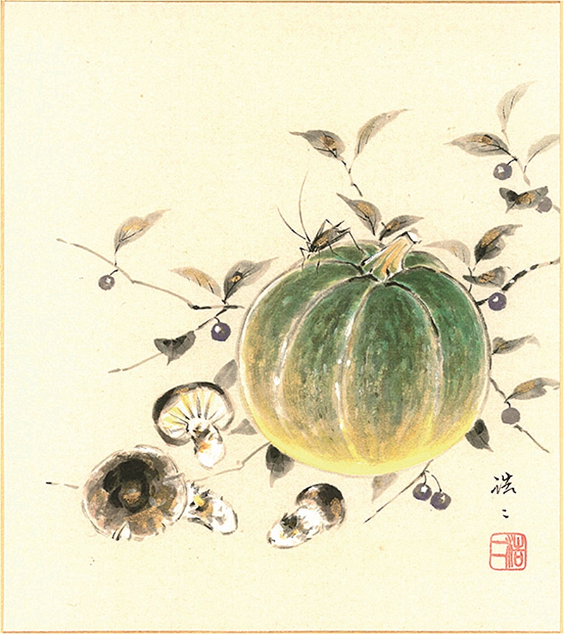 色紙(秋)佐藤 浩二作画「かぼちゃ」 色紙寸法24.2X27.2cm