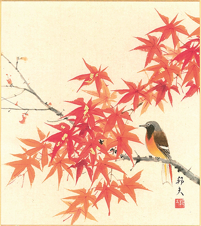 色紙(秋)片山 邦夫作画「紅葉」 色紙寸法24.2X27.2cm