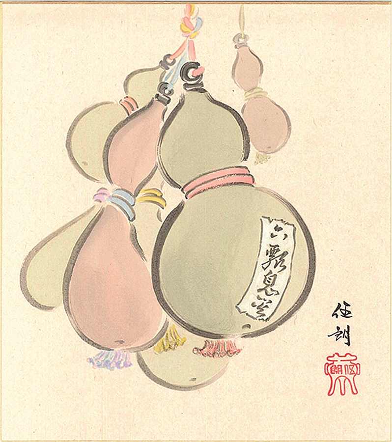 色紙(年中 その他)林 伍朗作画「六瓢息災」 色紙寸法24.2X27.2cm
