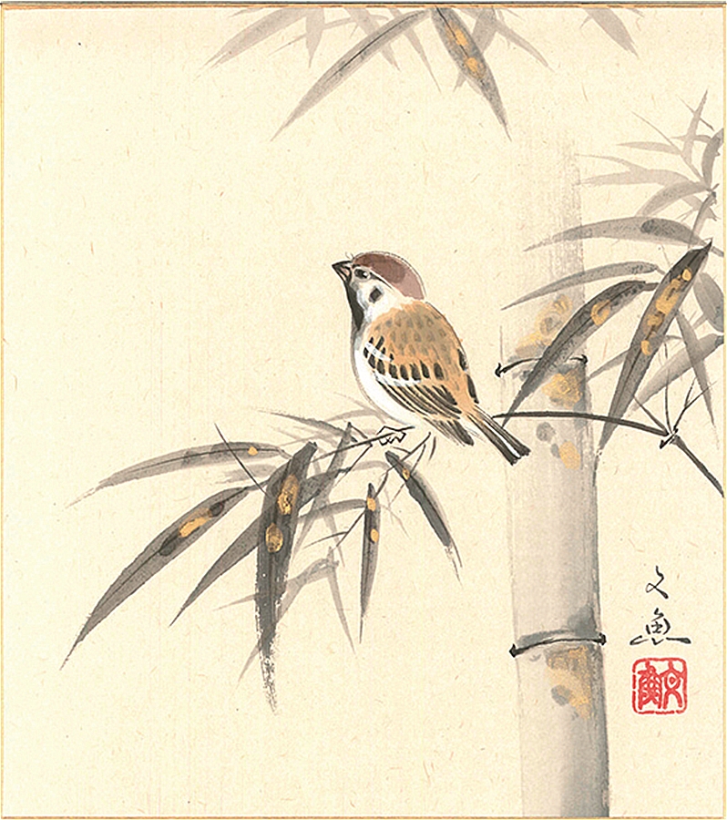 色紙(年中 その他)中谷 文魚作画「竹に雀」 色紙寸法24.2X27.2cm