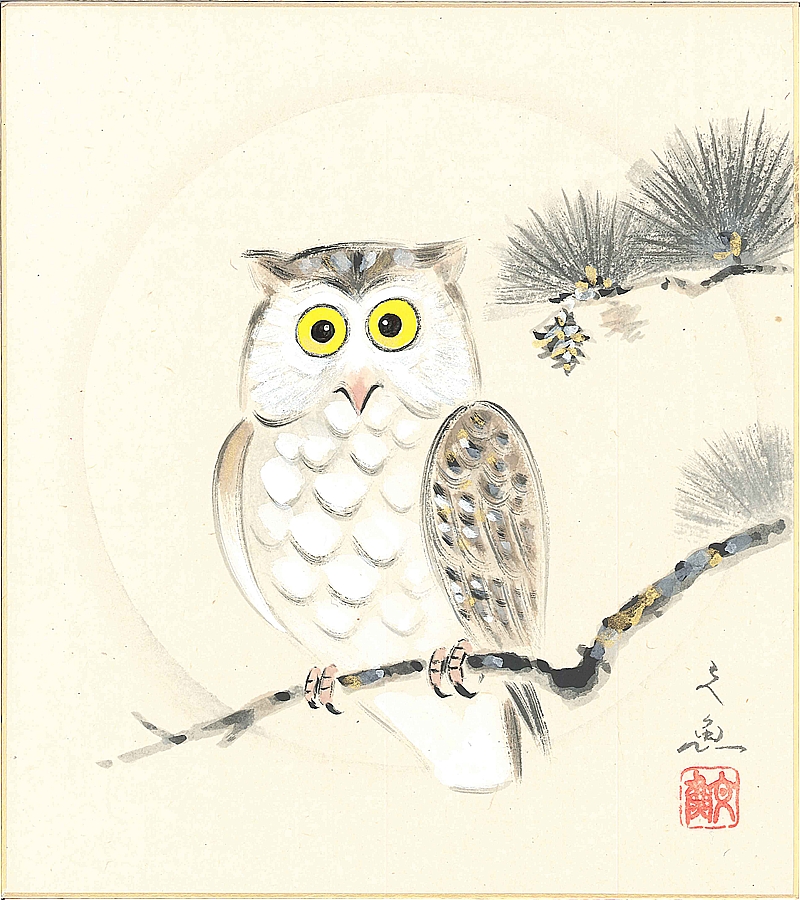 色紙(年中 その他)中谷 文魚作画「ふくろう」 色紙寸法24.2X27.2cm
