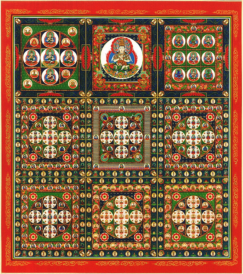 現代仏壇用硯屏(工芸色紙) 「金剛界曼荼羅」 額縁寸法24X27cm