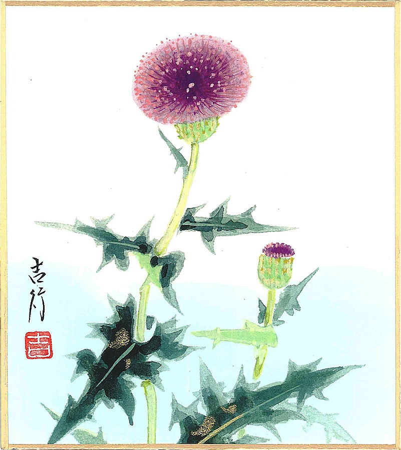 寸松庵色紙(夏)佐藤 吉行作画「薊」 寸松庵寸法13.6X12.1cm