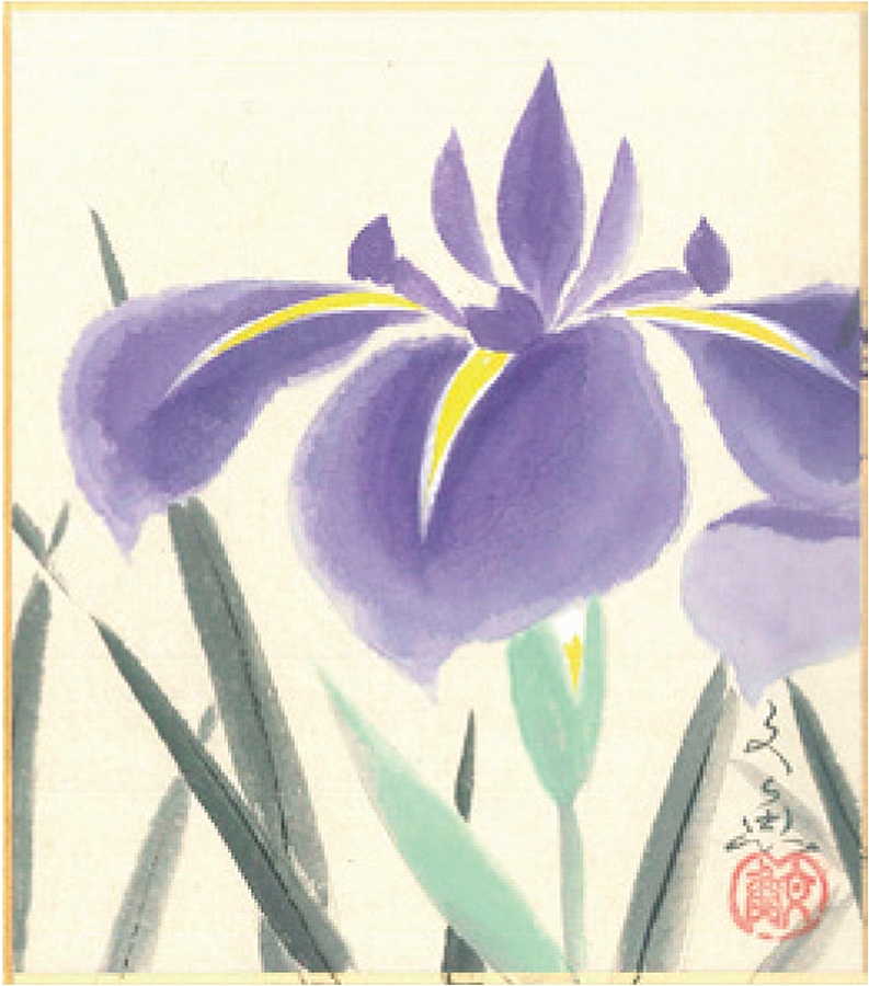 寸松庵色紙(春)中谷 文魚作画「菖蒲」 寸松庵寸法13.6X12.1cm