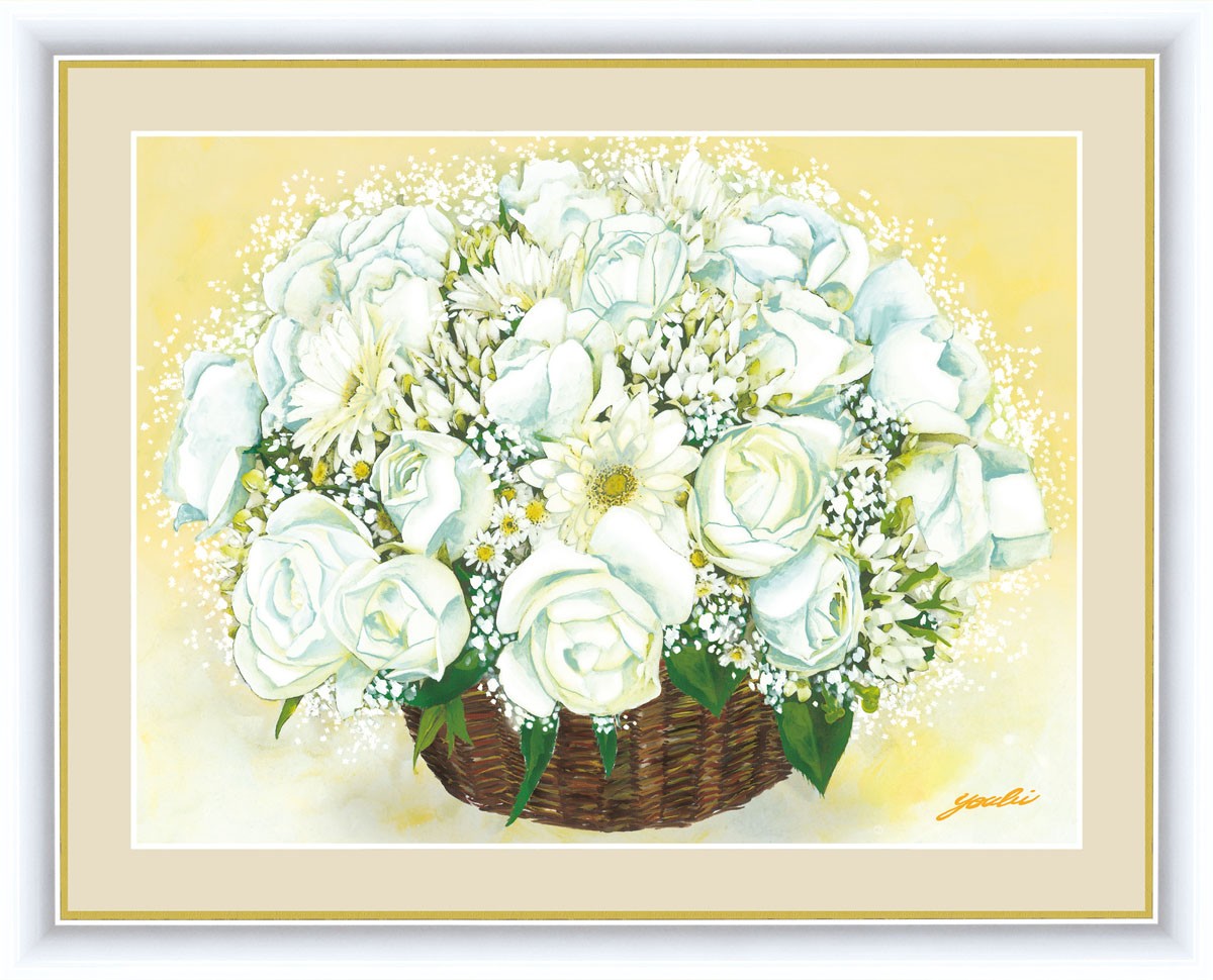 絵画 高精細デジタル版画 インテリア 壁掛け 額縁付き 洋 美作 「清純な白いブーケ」 F6