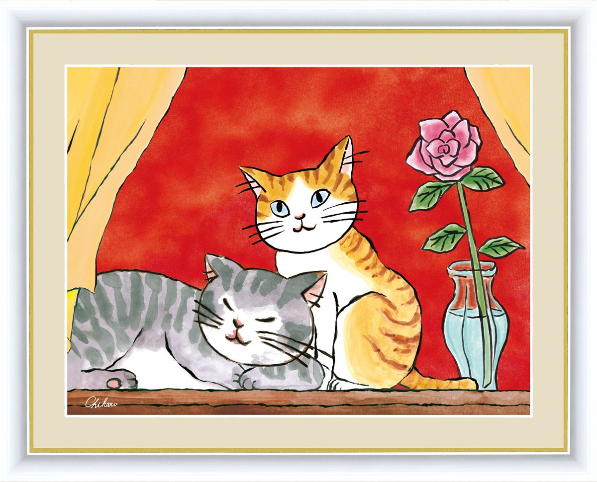 絵画 高精細デジタル版画 インテリア 壁掛け 額縁付き 千 春作 「慈しみのねこ」 F6