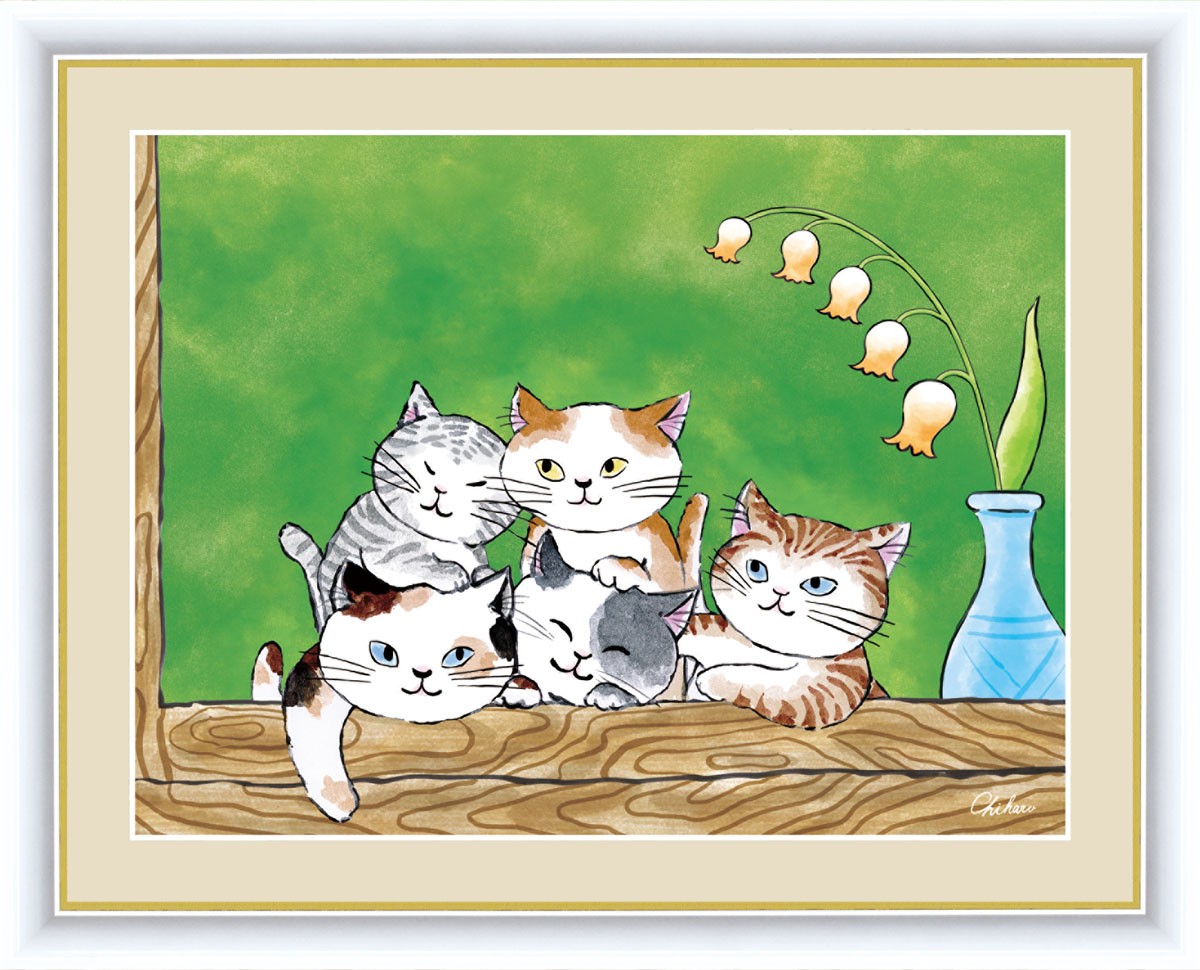 絵画 高精細デジタル版画 インテリア 壁掛け 額縁付き 千 春作 「癒しのねこ」 F6