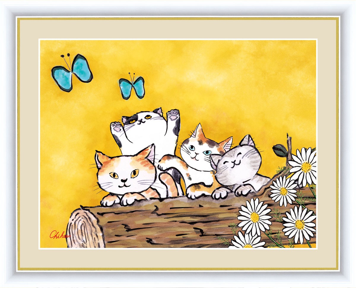 絵画 高精細デジタル版画 インテリア 壁掛け 額縁付き 千 春作 「幸福のねこ」 F6