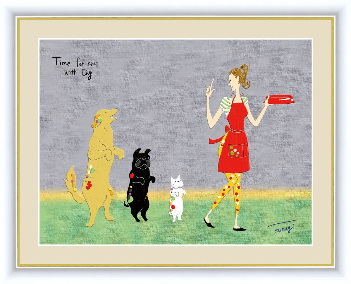 絵画 高精細デジタル版画 インテリア 壁掛け 額縁付き 山田 つむぎ作 「ランチの順番」 F6