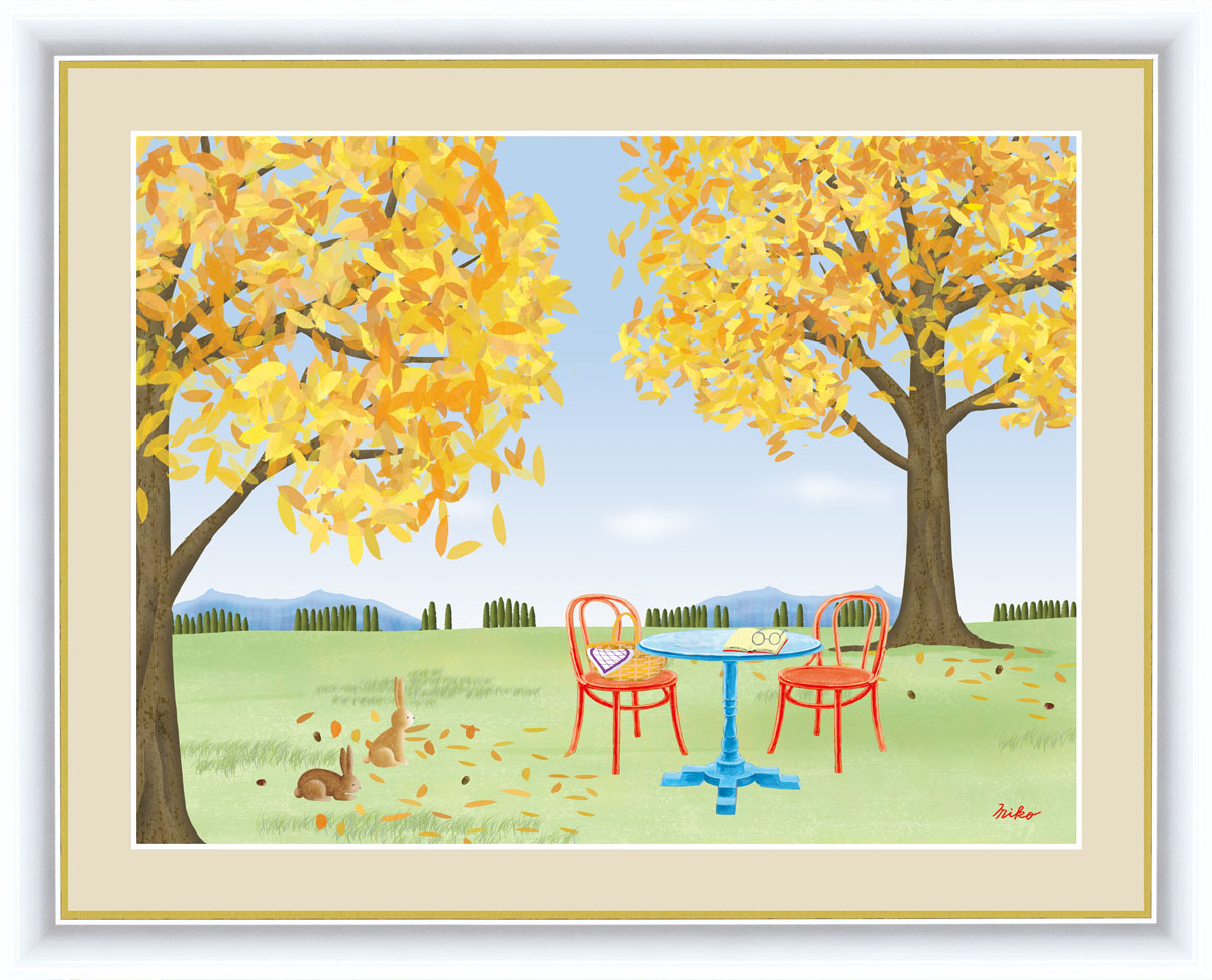 絵画 高精細デジタル版画 インテリア 壁掛け 額縁付き 鈴木 みこと作 「どんぐりの木」 F4