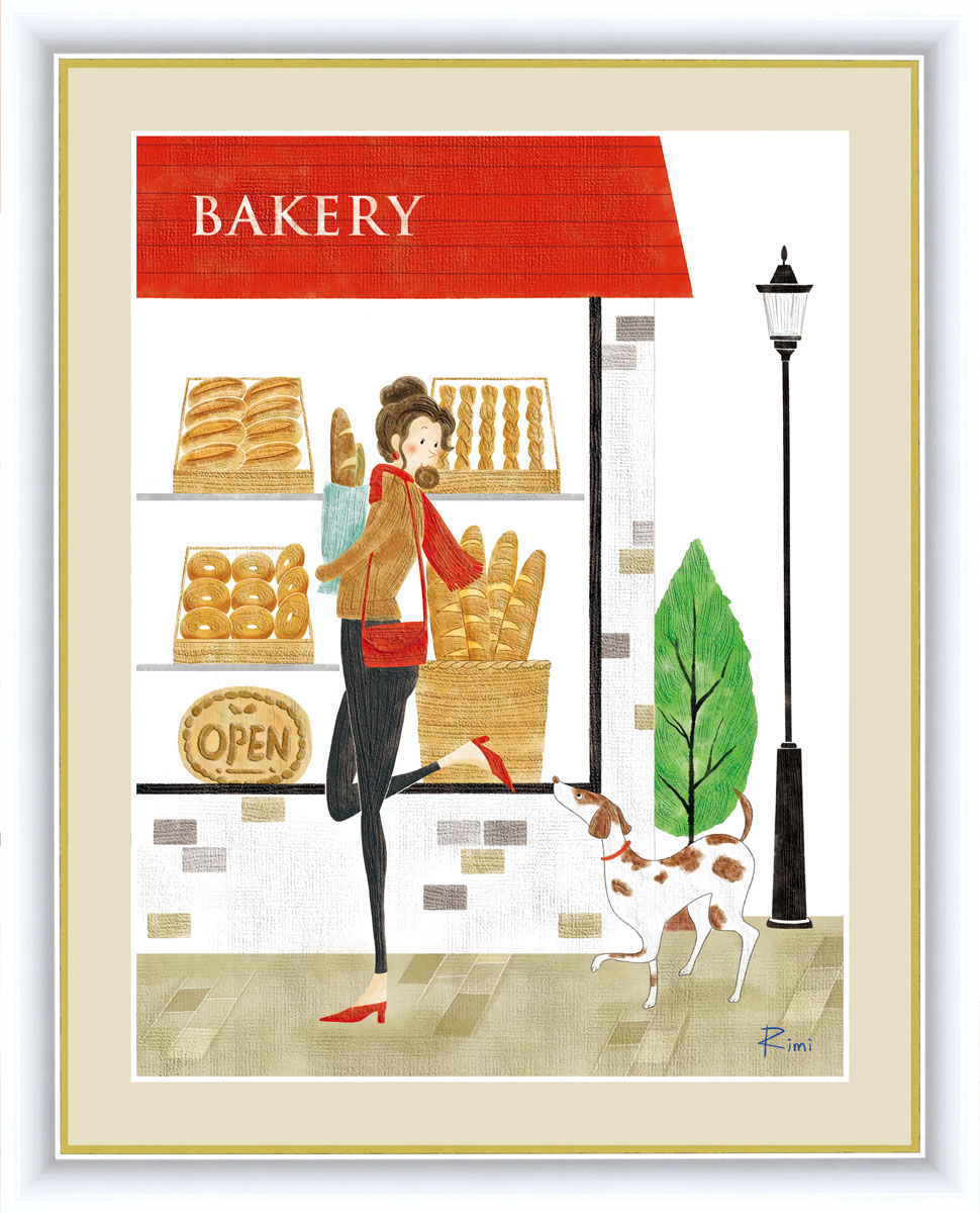 絵画 高精細デジタル版画 インテリア 壁掛け 額縁付き 佐久間 莉美作 「ベーカリー」 F6