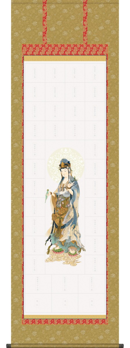 ・本紙:新絹本 軸先:合成樹脂 紙箱収納(別売り収納ケース有り) 本格表装掛軸タイプ |
