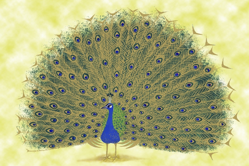 絵画 ジーグレー版画 吉岡浩太郎 縁起画 「吉兆孔雀」 インチ:絵画シート+マット