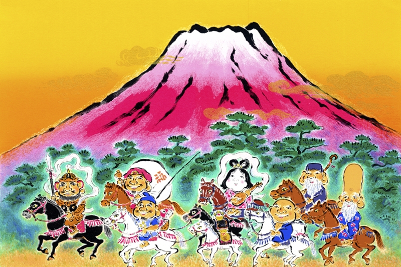 絵画 ジーグレー版画 吉岡浩太郎 縁起画 「七福神馬九行」 インチ:絵画シート+マット