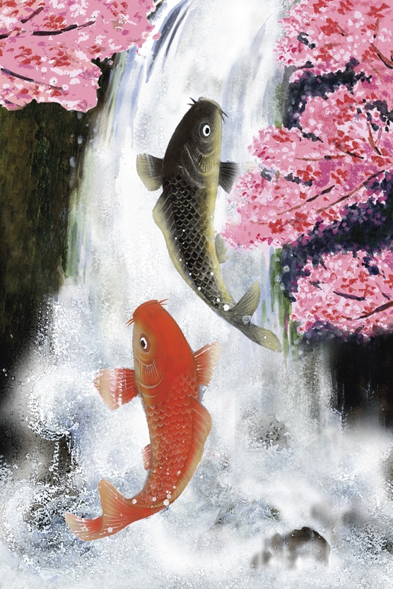 絵画 ジーグレー版画 吉岡浩太郎 縁起画 「双鯉吉祥」 インチ:絵画シート+マット