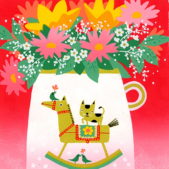 色の美しさ、絵の内容のわかりやすさ、夢のある楽しさなど、絵画を通じて毎日の生活に潤いを感じて頂けますように制作をしております。
