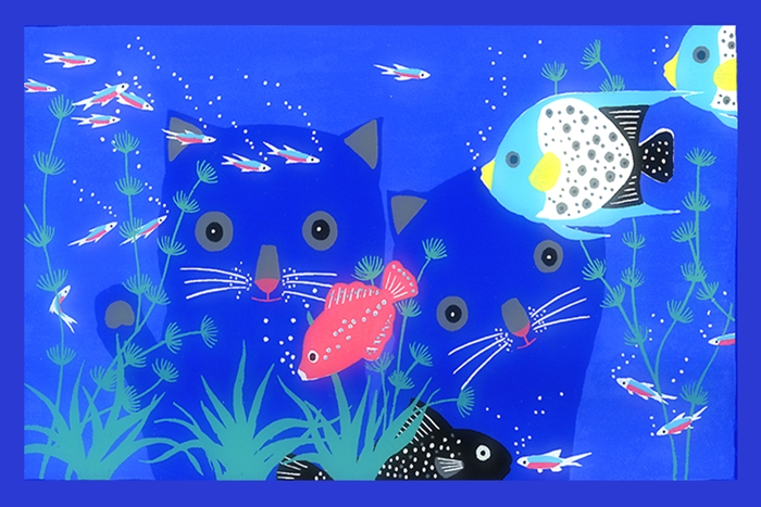 絵画 ジーグレー版画 吉岡浩太郎 楽しいイメージ 「猫と魚T判」 太子:絵画シートのみ