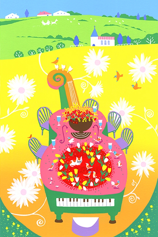 色の美しさ、絵の内容のわかりやすさ、夢のある楽しさなど、絵画を通じて毎日の生活に潤いを感じて頂けますように制作をしております。