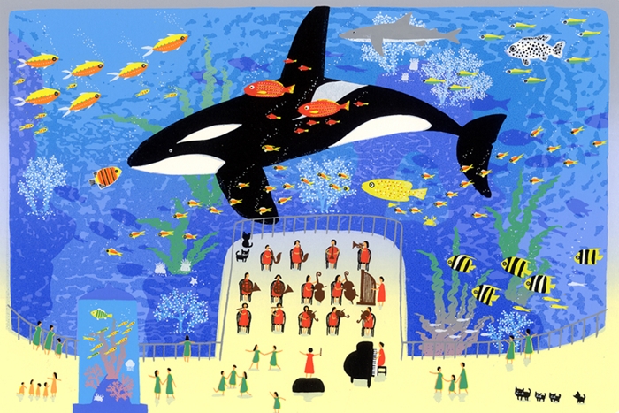 絵画 ジーグレー版画 吉岡浩太郎 楽しいイメージ 「魚の楽園」 インチ:絵画シート+マット