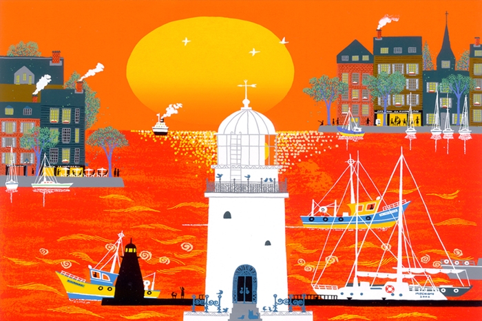 絵画 ジーグレー版画 吉岡浩太郎 夢・希望のイメージ 「白い灯台A」 太子:絵画シートのみ