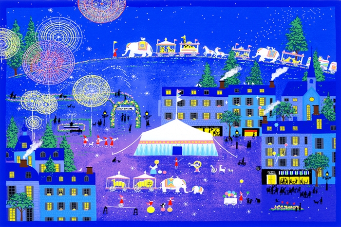 絵画 ジーグレー版画 吉岡浩太郎 夢・希望のイメージ 「サーカスの夜」 インチ:絵画シート+マット
