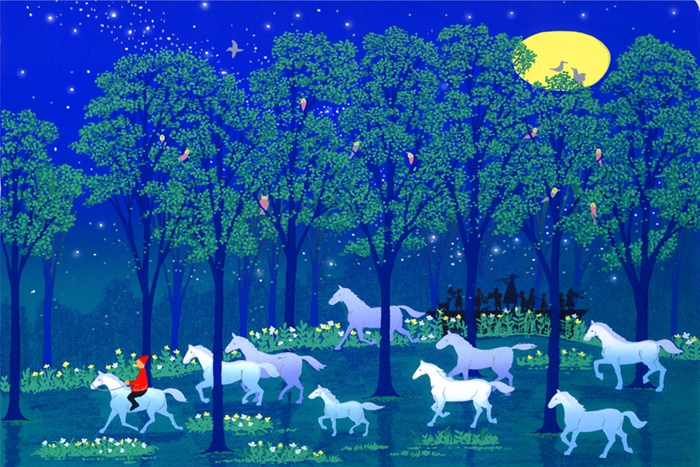 絵画 ジーグレー版画 吉岡浩太郎 夢・希望のイメージ 「白馬の森」 太子:絵画シートのみ