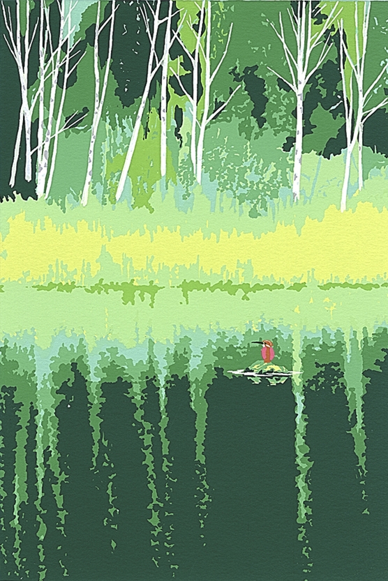 インクジェットプリンター印刷とお考え下さい。さらに吉岡浩太郎版画はプリントされたものにシルクスクリーン版画の技術をかさね、より色の深みが出るように画面処理がされています。