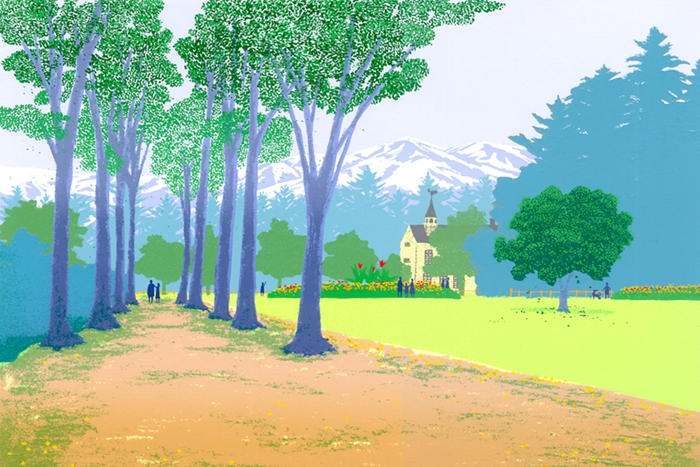 絵画 ジーグレー版画 吉岡浩太郎 自然なイメージ 「散歩道」 インチ:絵画シート+マット