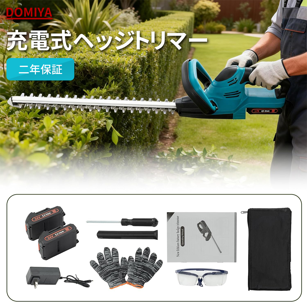 DOMIYA ヘッジトリマー 充電式 電動ヘッジトリマー 両刃駆動 庭木 剪定 園芸用品 トリマー 電動トリマー ガーデントリマー 生け垣トリマー 電動 コードレス
